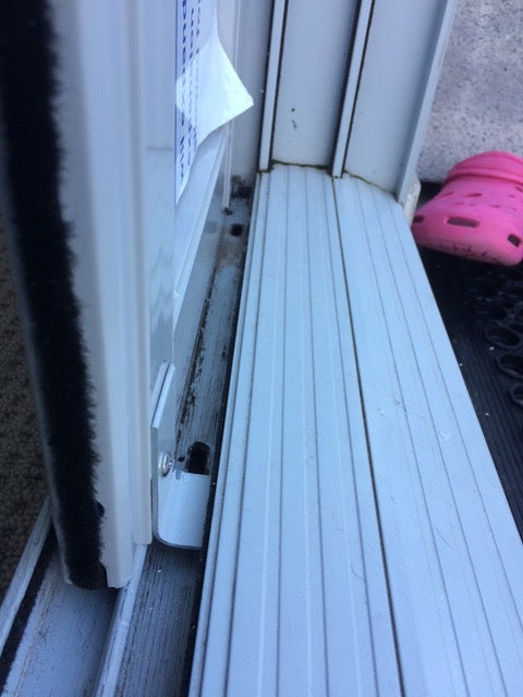 Purchase a Plate $5 to create an angle bracket. One screw goes into bottom of the pet door insert and other leg of the bracket is extended to the end of the track. This will give a pet door extra stability once installed and you will be able to align the locks nicely together.